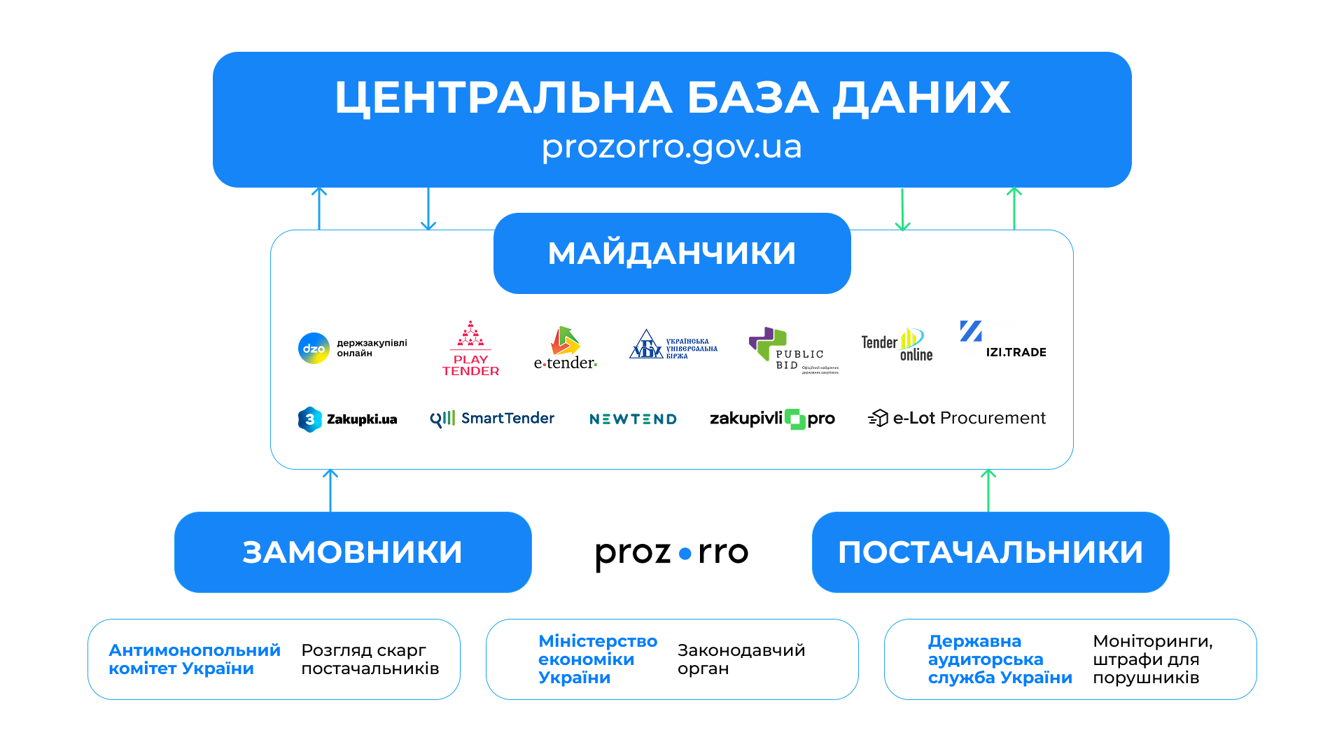 Prozorro — це електронна платформа, яка об’єднує понад 35 тисяч державних та комунальних органів влади та підприємств (замовники товарів, робіт та послуг) та близько 250 тисяч комерційних компаній (постачальники).